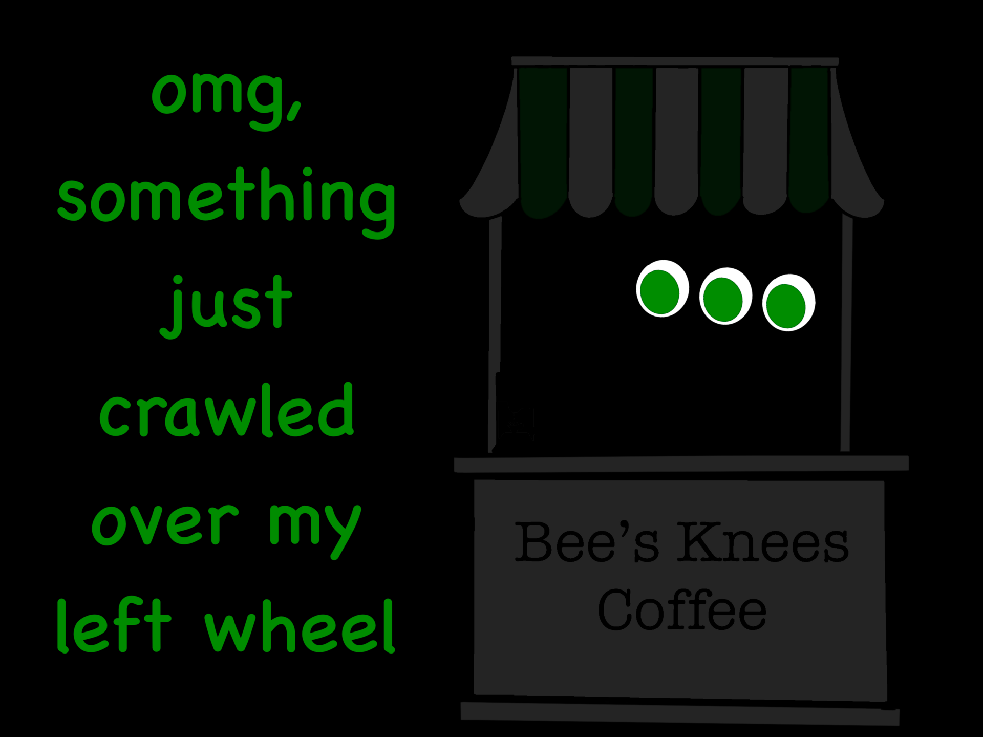 The good news is, cockroaches love Bee’s Knees Coffee! The other news is, st3v can’t see them…